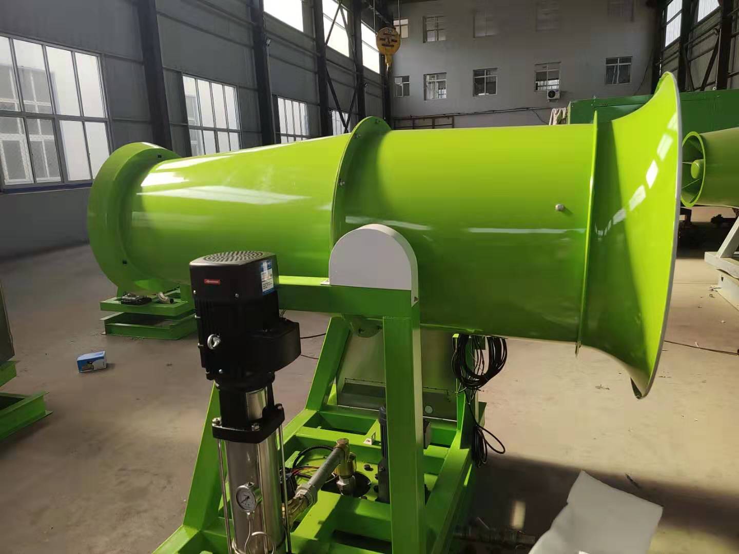(1)機(jī)械設(shè)備與后期維護(hù)保養(yǎng)不可分割,機(jī)械維修是不可忽視的一部分,如心臟的照顧必將導(dǎo)致機(jī)械設(shè)備的老化,導(dǎo)致使用壽命縮短。那么你如何進(jìn)入噴霧器的維護(hù)? 霧炮機(jī)應(yīng)該是用高壓安裝將水霧化工作,使水霧和粉塵顆粒相同大小的水分子,然后應(yīng)用大功率風(fēng)機(jī)送風(fēng),噴霧器具有強(qiáng)風(fēng),范圍廣,防塵空氣與水霧顆粒接觸凝結(jié)沉淀,然后到達(dá)防止灰塵,凈化空氣。